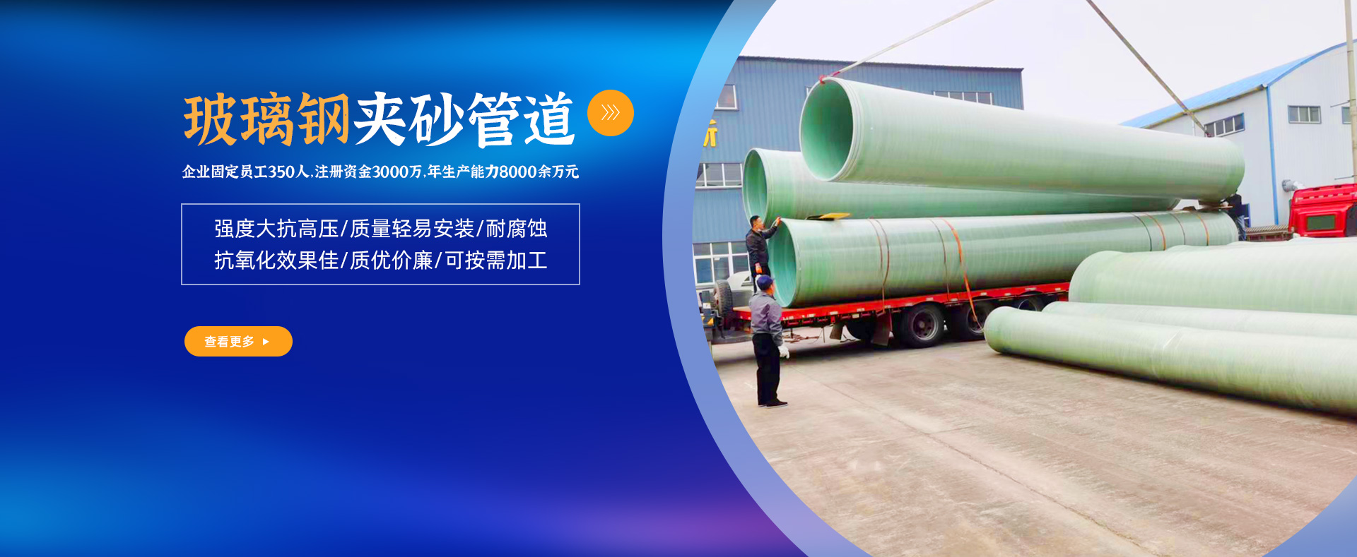 占地3萬平方米,建筑面積1.2萬平方米,企業固定員工350人,注冊資金3000萬,年生產能力8000余萬元,屬國內目前玻璃鋼行業規格較大的廠家之一